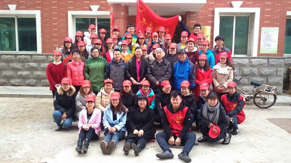 在鲜艳的青年志愿者旗的指引下,志愿者们身披授带、头戴志愿者小红帽,列队整齐走进二里社区。他们来到社区的报告厅为那里的老人表演了精心准备的