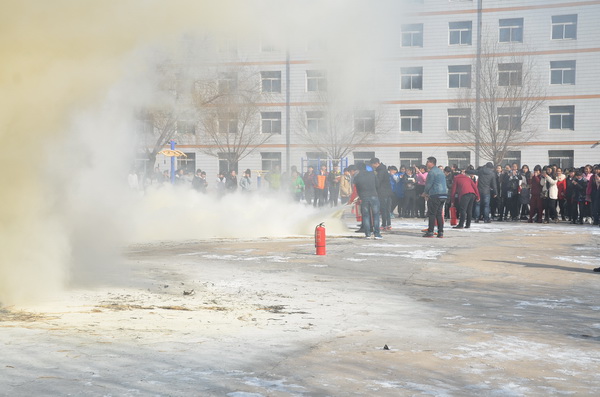 识。随后,保卫处工作人员和学生干部给大家做灭火器操作示范。在认真观看了工作人员的现场示范后,学生踊跃参加实际演练。生动形象的讲解、紧张有序的灭火