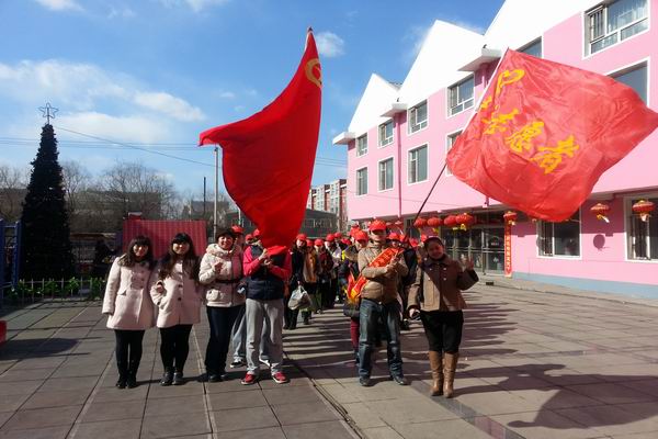 3月5日下午,我校团委副书记于佳、教师许伟胤和张炜带领40名学生志愿者,到四平市儿童福利院慰问。到达儿童福利院大门,在鲜艳的团旗和青年志愿者旗的指引下,志愿者们身披授带、头戴志愿者小红帽、列队整齐,走进福利院大楼。他们到各房间帮助儿童整理内务,打扫房间卫生。为儿童表演了歌舞“小燕子”等文艺节目。发放了学生捐款购买的价值1500余元的衣物、水果、牛奶和面包等慰问品,发放了张炜老师捐赠的价值500余元的衣物和学习用品。