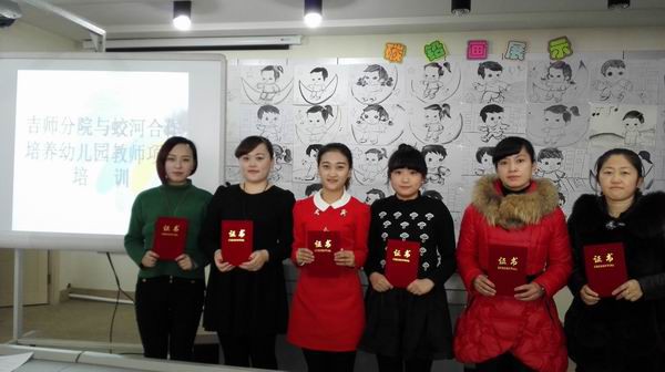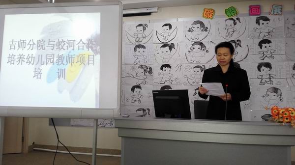 2016年1月8日下午“国培计划(2015)”——吉林省乡村教师访名校吉林师范大学分院和蛟河市合作培养幼儿园教师培训项目在蛟河市教师进修学校圆满结束。培训期间吉林师范大学分院韩亚楠主席以及杨红英主任不远千里冒着严寒,亲临培训现场进行指导并参加结业仪式。
