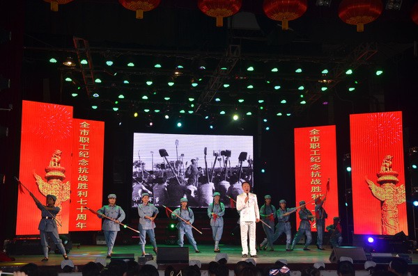 8月31日,由四平市总工会、四平市文广新局、四平市教育局、四平市卫计委、四平广播电视台主办,四平市总工会科教文卫工会承办的“全市职工纪念抗战胜利70周年文艺演出”在人民剧场举行。由吉林师范大学、四平艺术剧院、吉林师范大学分院等八家单位参演,共十个节目共同唱响抗战胜利70周年,为全市人民演绎了一场视觉和听觉盛宴。