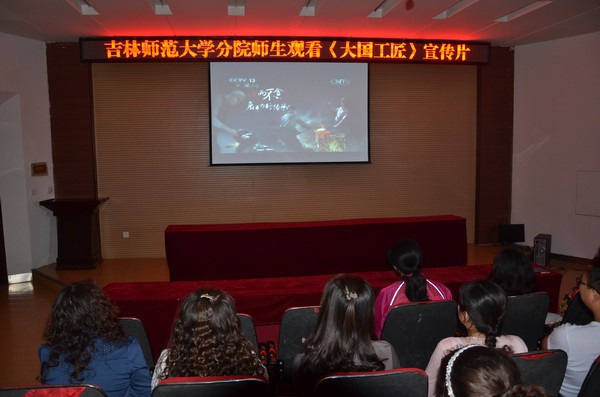 为认真学习“大国工匠”们精益求精的优秀品质、坚韧不拔的意志品格和追求卓越的职业精神,养成爱岗敬业、脚踏实地、兢兢业业的优良品德,6月10日下午,吉林师范大学分院组织全院教职工和部分学生代表在二教阶梯教室认真收看了《大国工匠》系列纪录片,并就学习“大国工匠”精神展开讨论。