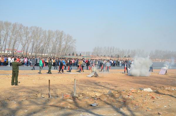 在演练现场,保卫处处长王建英向大家讲解了消防知识和灭火器的使用方法,他特别提醒大家,进入春季后,由于空气干燥易引发火患,必须提高防火意识。随后,保卫处工作人员和学生干部给大家做灭火器操作示范。在认真观看了工作人员的现场示范后,学生踊跃参加实际演练。生动形象的讲解、紧张有序的灭火演练给师生留下了深刻的印象,让他们受益匪浅。