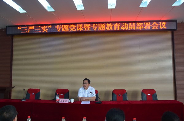 赵金刚在党课中阐述了开展“三严三实”专题教育的重大意义、深刻内涵、“不严不实”的具体表现和严重危害,明确提出了认真践行“三严三实”的实践要求。他强调,学校发展的关键就是要有一批特别能吃苦、特别能战斗、特别能干事的干部,要求领导干部要有强烈的发展意识和质量意识,把“想干事”的想法转化为“能干事”和“干成事”的行动,工作重实际、出实招、求实效、看实绩,真正将“三严三实”专题教育转化为思想自觉和行动自觉。