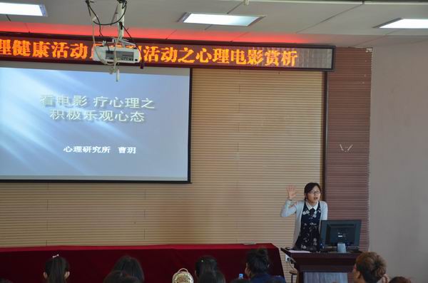 为更好地宣传和引导大学生关注自身心理健康, 6月3日,由吉林师范大学分院心理研究所曹玥老师主讲的《看电影 疗心理之积极乐观心态》心理电影赏析活动在二教一楼阶梯教室进行。心理研究所所长张玮、副所长陈立新、心理咨询师张乔乔出席了此次讲座。