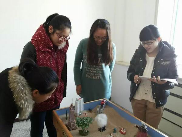 会后,张乔乔、曹玥两位老师组织同学们进行了三组团体沙盘游戏体验活动。