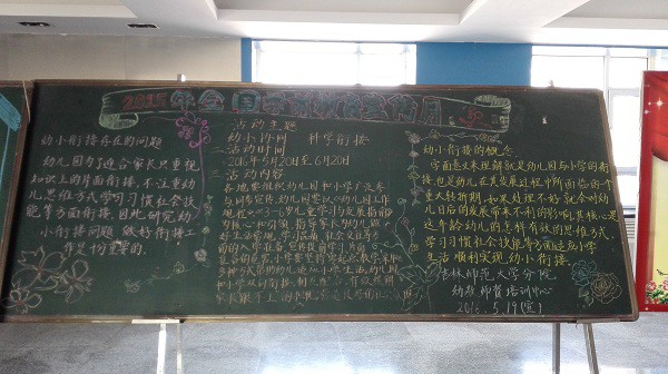 准备工作。围绕宣传月主题,收集、整理、选用宣传材料。包括幼儿园教育如何避免小学化倾向、幼小衔接的重要意义、幼小如何衔接等问题,最后开会讨论确定宣传板所用内容。