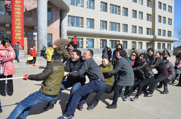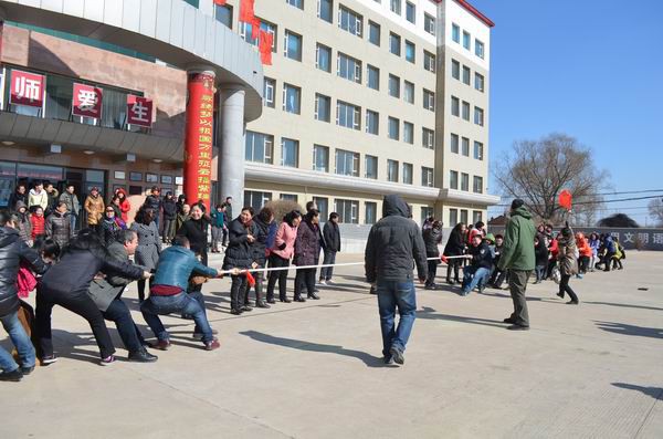 3月7日中午12:30分学校工会组织举行了拔河比赛。比赛由行政队、文科队、理科队和艺体科队四队参加,实施淘汰制晋级方式。比赛的哨声响起,队员们高呼口号,憋足了劲拼命往后拉,号子声、呐喊声,此起彼伏,回荡在校园的上空。经过激烈地角逐,行政队获得了第一名,理科队位居第二名,文科队和艺体科队并列第三。