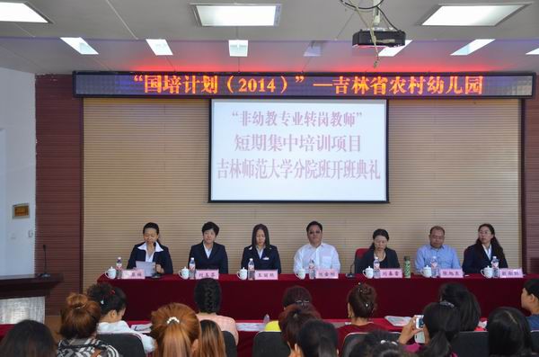 2014年9月15日上午在第二教学楼阶梯教室,吉林师范大学分院隆重举行“国培”非幼“转岗教师”开班典礼。参加开班仪式的领导有首席专家吉林师范大学刘春蕾教授,四平市学前教育办公室张旭东主任,吉林师范大学分院的各位领导和全体学员。典礼由吉林师范大学分院工会主席韩亚楠主持。