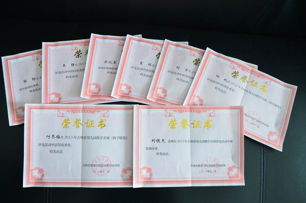 吉林省幼儿园教学名师评选活动设“吉林省幼儿园教学新秀奖”和“吉林省幼儿园教学精英奖”两类。教学名师选拔赛设置了主题说课、边弹边唱、讲故事和为故事配画四个项目。通过专家、评委层层审核,参选的吉林师大幼儿园的黄媛老师被吉林省教育厅教学研究室评为“教学精英”;双辽市幼儿园的刘俊丽老师荣获“教学新秀”称号。市政府机关幼儿园的邱收等八名教师荣获“吉林省幼儿园教学名师(教学新秀)优秀奖。”韩亚楠、王敬为两名教师获得指导奖。