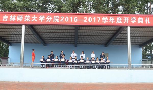 在秋高气爽,丹桂飘香这样一个收获的季节,吉林师范大学分院于9月8日在校运动场召开2016级新生开学典礼。出席大会的领导有党委书记、院长赵金刚,党委副书记、纪委书记王丽艳,副院长刘玉芬、马福元,工会主席韩亚楠,院长助理敖淑红。