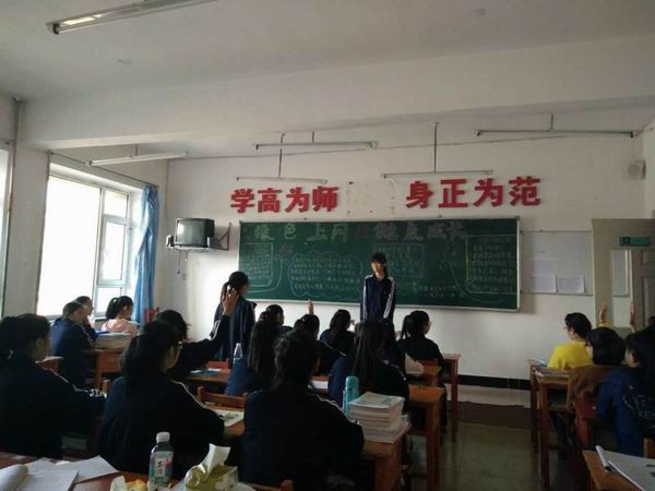 班会上,老师们组织学生学习网络安全知识,引导学生认识沉迷网络的害处,提醒学生警惕垃圾网页,拒绝不良诱惑,正确对待网络交友、文明使用网络用语,并对同学们的日常网络生活提出了相应的要求。学生们也畅所欲言,对如何文明使用网络谈了自己的看法。有的同学说使用网络要注意安全问题,不能轻易相信陌生人;有的同学说在网络上发表个人意见、建议,要把握好度的问题,不能违反法律法规和有关规定,不能传播谣言、散布虚假信息;有的同学说在日常网购和使用网银时加强甄别能力,提高防范意识,认为网购时要注意帐号和密码的保密,不轻易将保密信息告诉他人;有的同学就大学生中存在的网络游戏成瘾问题发表了看法,认为生活中应多和同学交流,避免沉迷网络;有的同学说网络知识应合理利用,查找学习资料,浏览新闻网页对大学生成长成才十分有利。