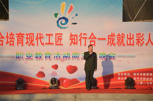 为了更好的展示职业教育成果,5月27日,四平市教育局主办的“产教融合培育现代工匠,知行合一成就出彩人生”主题晚会在月亮广场举行,全市职业学校师生代表参加了此次活动,四平市委、市政府及市教育局等有关单位领导观看了演出。晚会上,各职业学校充分展示办学成果,节目异彩纷呈。特别是我校师生代表参演的两个节目:学生舞蹈及基本功展示《采薇舞》、陈希权老师独唱《我们的祖国歌甜花香》,赢得台下掌声阵阵。活动现场,分院教师为市民提供了招生政策、学生资助政策的现场咨询,并对学校展板进行解说,耐心为咨询市民进行解答,使市民们进一步了解学校的办学条件、办学特色、师资力量、培养模式、办学成果以及学生发展方向。
