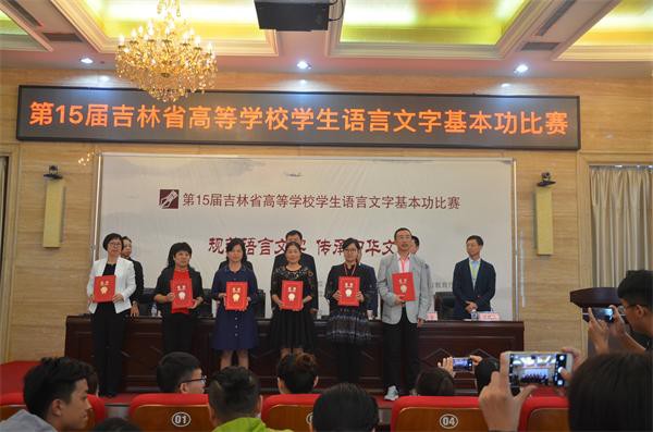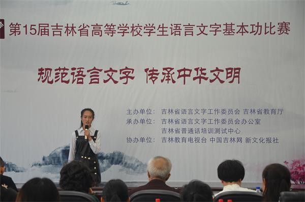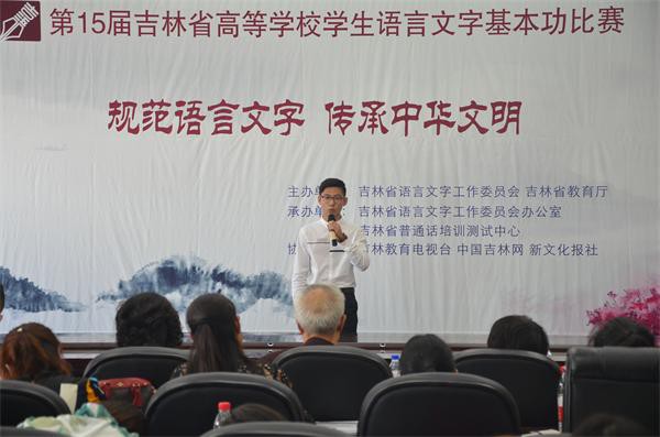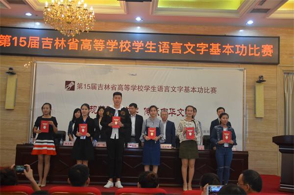 由吉林省教育厅、吉林省语言文字工作委员会主办的第15届吉林省高等学校学生语言文字基本功大赛于14日在长春正式开幕。经过3天紧张激烈的角逐,我校三名选手在7所高师分院的21位语言文字“学霸”选手之中脱颖而出,以雄厚的实力蝉联师范类乙组冠军,以团体总分第一名的佳绩载誉而归。程琳智、高铭鸿同学分别以个人总分第一名和第二名的成绩荣获个人一等奖,李宇航同学荣获个人二等奖;刘士英、尚晓巍、王壮、孙鹤、李爽五位老师分别荣获优秀指导教师奖;学校荣获优秀组织奖。至此,这是我校自2003年至今连续创下蝉联八届冠军的殊荣!