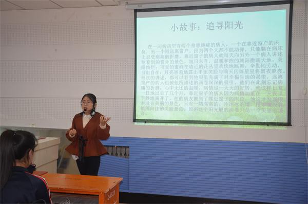 讲座中曹玥老师从健康心态的了解、重要性以及如何保持健康心态的方式、如何用积极的心态去面对挫折、如何学会自我安慰、自我暗示和自我激励等方面与新同学们进行了一场心灵之间的对话。会上同学们积极踊跃回答老师的问题,气氛热烈。