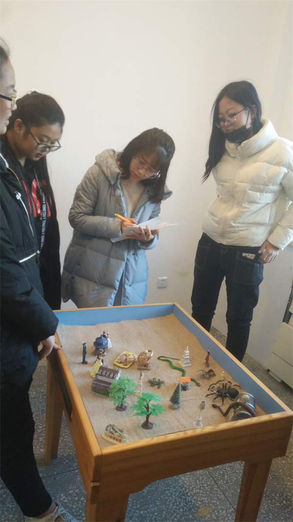 为了让学生了解心理研究所的工作内容,曹老师在会后带领新社团成员们参观了心理研究所各功能室。参观后学生们积极询问各种问题,并向曹老师提出组织社团成员们做两组沙盘游戏。