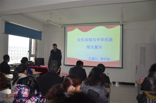 3月3日我校邀请了吉林师范大学历史学院副院长、教授夏宇旭为全院教师上了开学第一课——文化自信与中华民族的伟大复兴,夏教授的讲座内容广博、感情充沛,让每位教师心中充满了文化自信与民族自豪。同时讲座又不失风趣幽默,报告厅不断传出阵阵掌声。