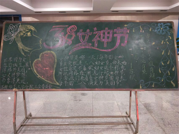 3月5日学校工会组织出版了一期主题为“维护妇女权利,关爱女性健康”的板报。板报分两部分内容:一是介绍“三八”节的由来和妇女有哪些权利,使全校女教工从中受到鼓舞,更加明确自己在学校发展和建设中的重要作用;二是关爱女性健康,介绍了一些妇女保健小常识,从而提高女教工的幸福指数。