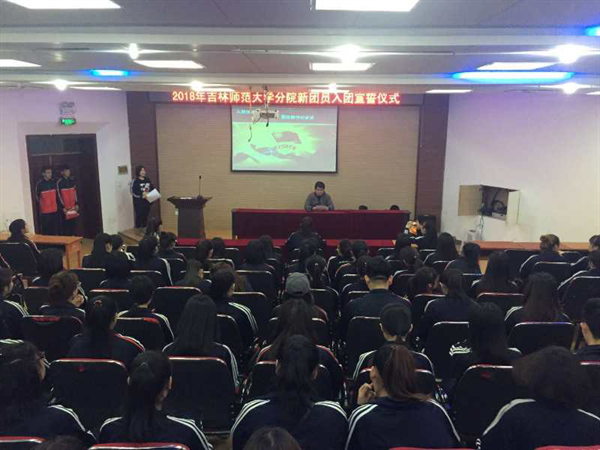 为弘扬五四精神,2018年5月3日18点30分,吉林师范大学分院团委在第二教学楼阶梯教室举行了2018年春季新团员入团宣誓仪式。宣誓仪式由校团委宣传部蒋鹤同学主持。学校团委负责人朴洪涛、学生团干部、新老团员共100余人参加了仪式。