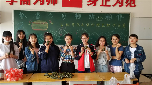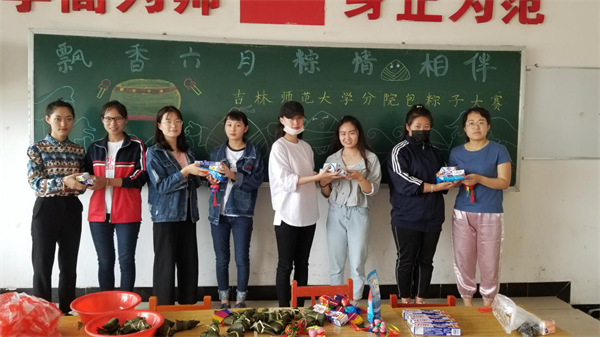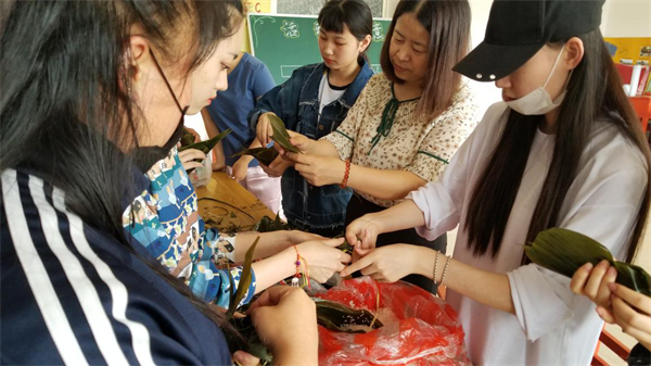 2018年6月14日下午,我院团委组织开展了以“飘香六月 粽情相伴”为主题的端午节包粽子比赛及贫困生慰问品发放活动。党办主任王赛群、团委负责人朴洪涛、学生处副主任徐岩、团委学生干部以及部分贫困生代表参加了本次活动。